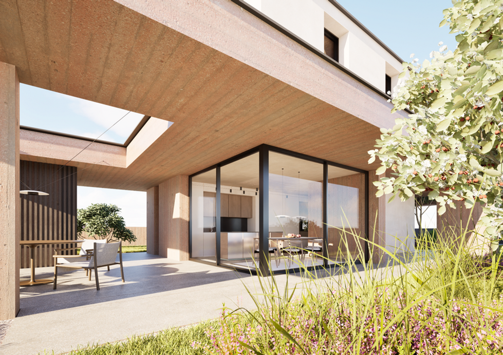 Questa residenza indipendente di nuova generazione interpreta l'eleganza con linee essenziali, materiali ricercati e un'armonia naturale con l'ambiente circostante. II volume principale si sviluppa con proporzioni equilibrate e superfici materiche che donano carattere e raffinatezza.
