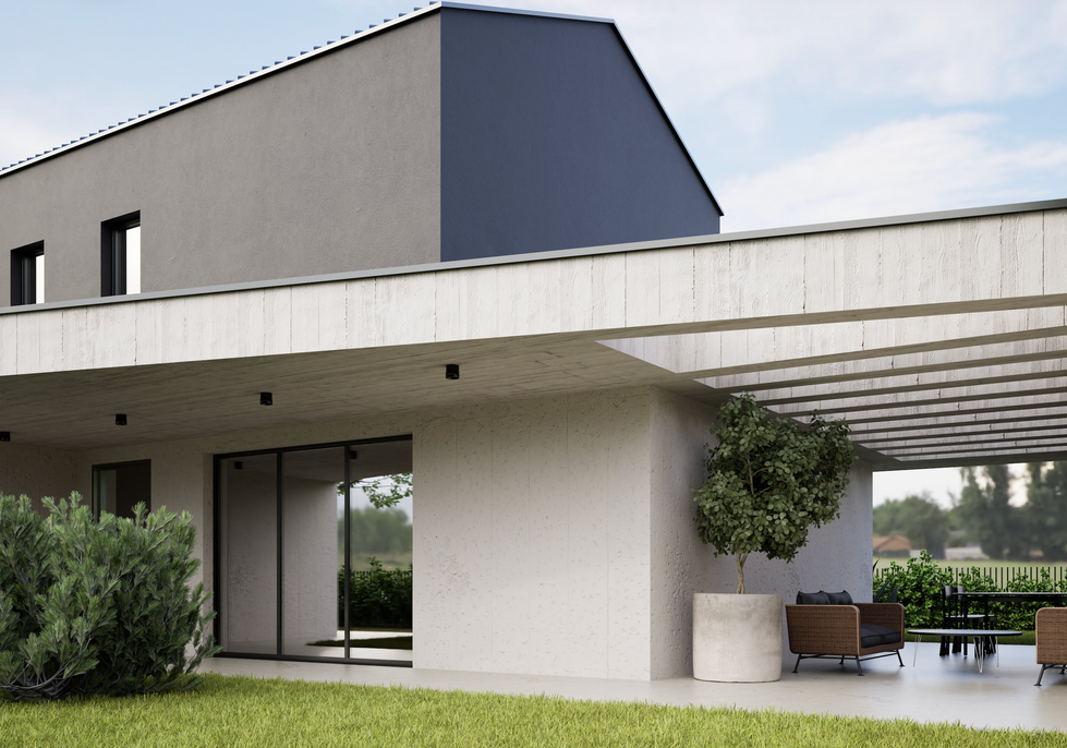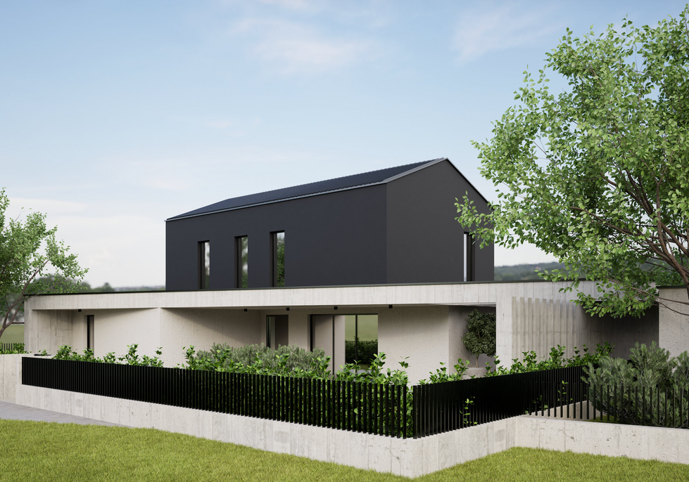 La villa esprime una presenza forte e contemporanea, radicata nella solidità della materia e nell’equilibrio tra pieni e vuoti. Ogni elemento, dalla composizione dei prospetti alla scelta dei materiali, contribuisce a definire un linguaggio architettonico coerente, essenziale e di grande personalità, che riflette il temperamento deciso del suo committente.